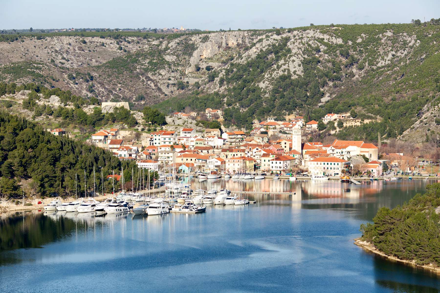 Motor the scenic St. Anthony Channel into the Krka River and settle into pastel‑toned Skradin, gateway to Krka National Park.