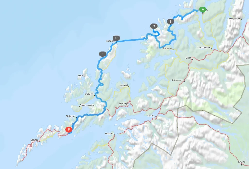 7-day Norway sailing itinerary from Tromsø to Svolvær