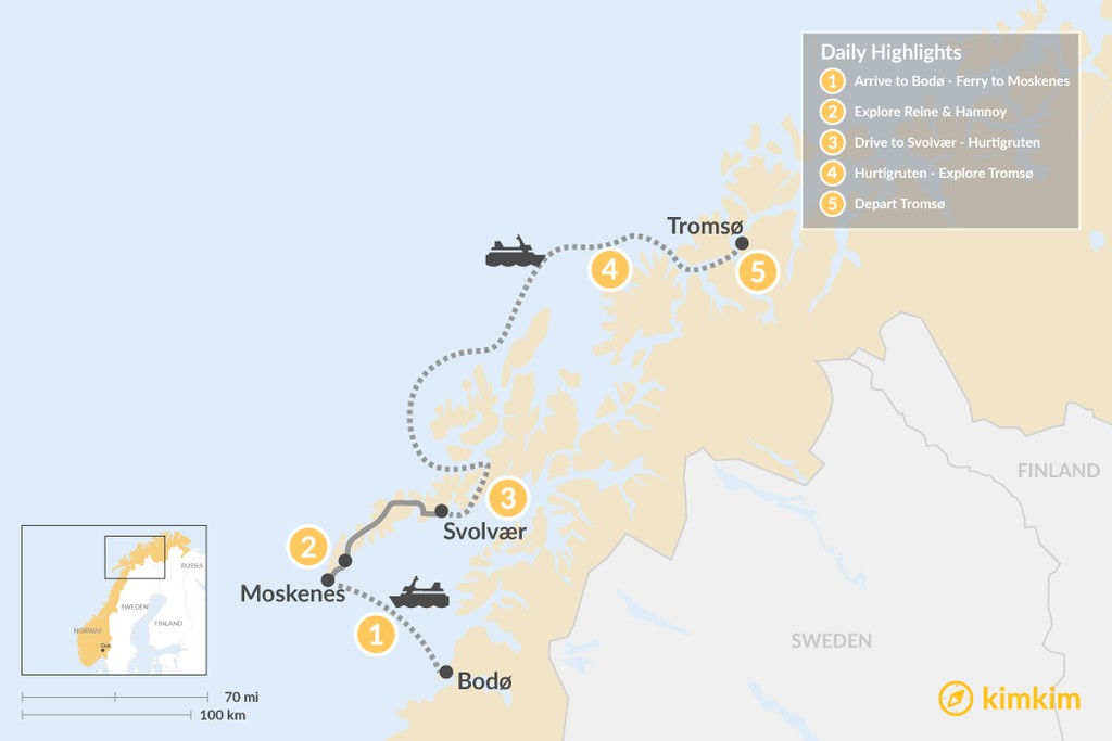 Travel logistics: Fly into Tromsø to embark, and home from Svolvær (or extend west within Lofoten if time allows).
